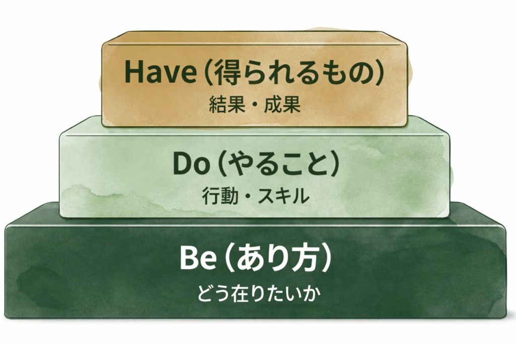 「あり方 "Be"」が定まって初めて、「行動 "Do"」が意味を持ち、「成果 "Have"」が変わります。